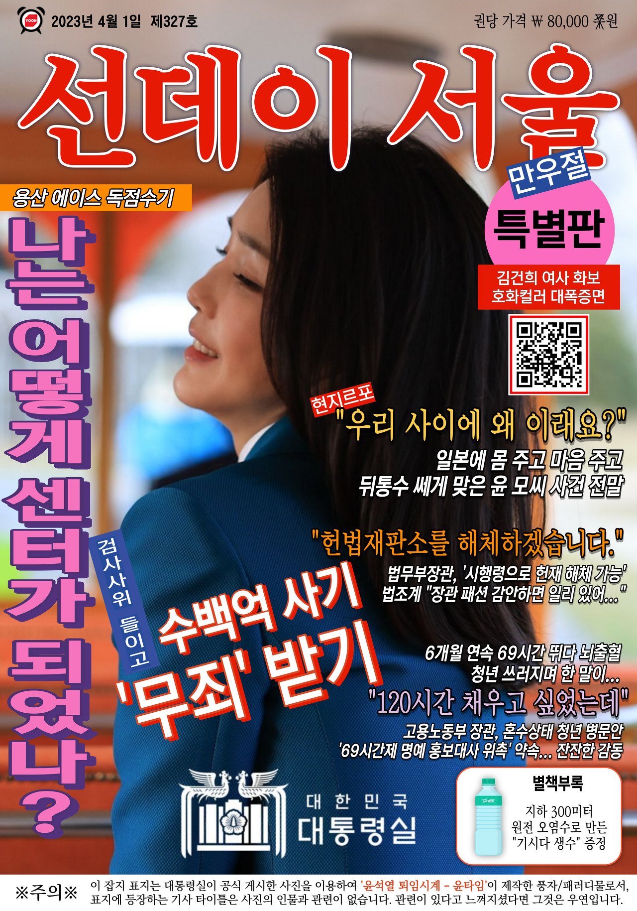 이 잡지 포지는 대통령실이 공식 게시한 사진을 이용하여 '윤석열 퇴임시계 - 윤타임'이 제작한 풍자/ 패러디물로서 표지에 등장하는 기사 타이틀은 사진의 인물과 관련이 없습니다. 관련이 있다고 느껴지셨다면 그것은 우연입니다.